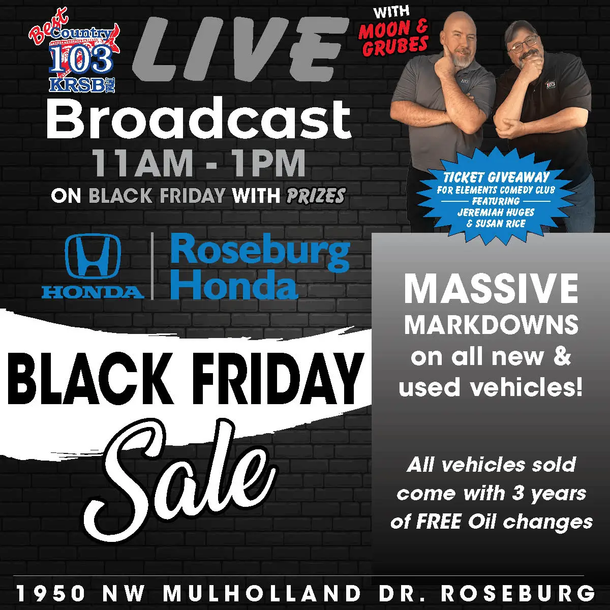 🚨 BIG NEWS, Roseburg! 🚨 Moon & Grubes of Best Country 103 are rolling into town the day before Thanksgiving! 🦃 Join us Wednesday, November 26th from 1–3 PM at Sherm’s Thunderbird Market for The News-Review's EARLY Black Friday newspaper drop! Grab your paper, get the first look at all the hottest deals in town BEFORE Black Friday hits, and everyone who picks one up gets automatically entered to WIN a Wildlife Safari encounter! 🦒🦁 Come hang out, say hi, and get ready to save big. See you there! 👋 #Roseburg #BlackFriday #MoonAndGrubes #WildlifeSafari #ShopLocal